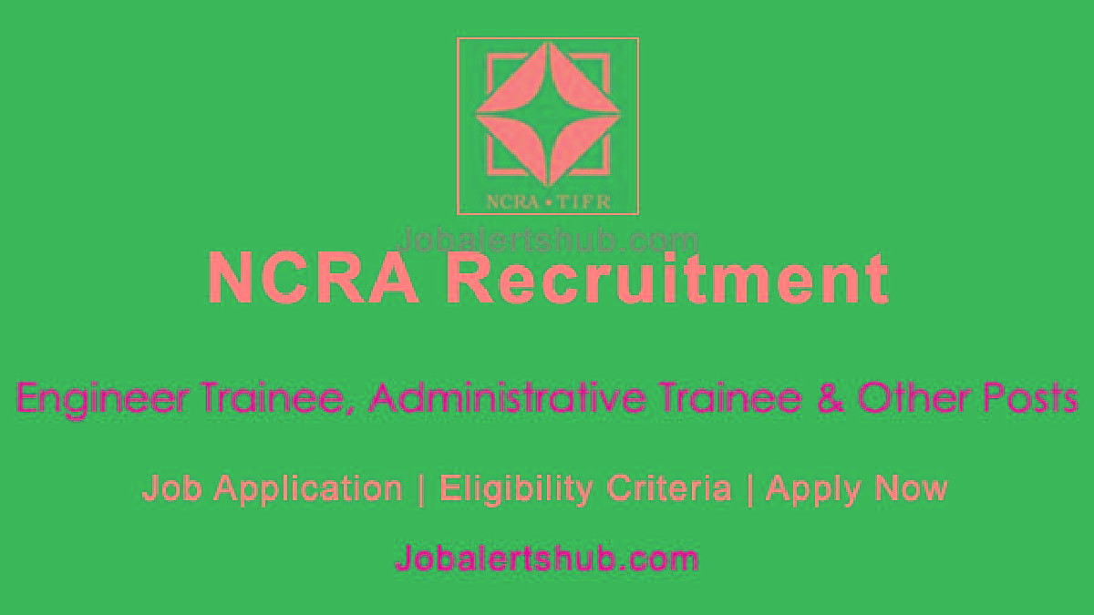 The notification announces job vacancies at the National Centre for Radio Astrophysics (NCRA) for Engineer Trainee, Administrative Trainee, and other posts. The positions are available for candidates with a Diploma/BE/B.Tech in relevant fields.