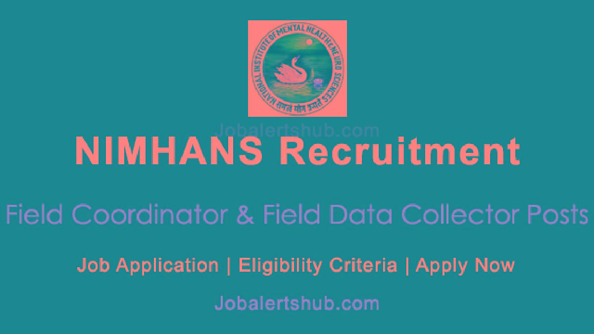 NIMHANS has announced job vacancies for Field Coordinator & Field Data Collector posts on a contract basis.