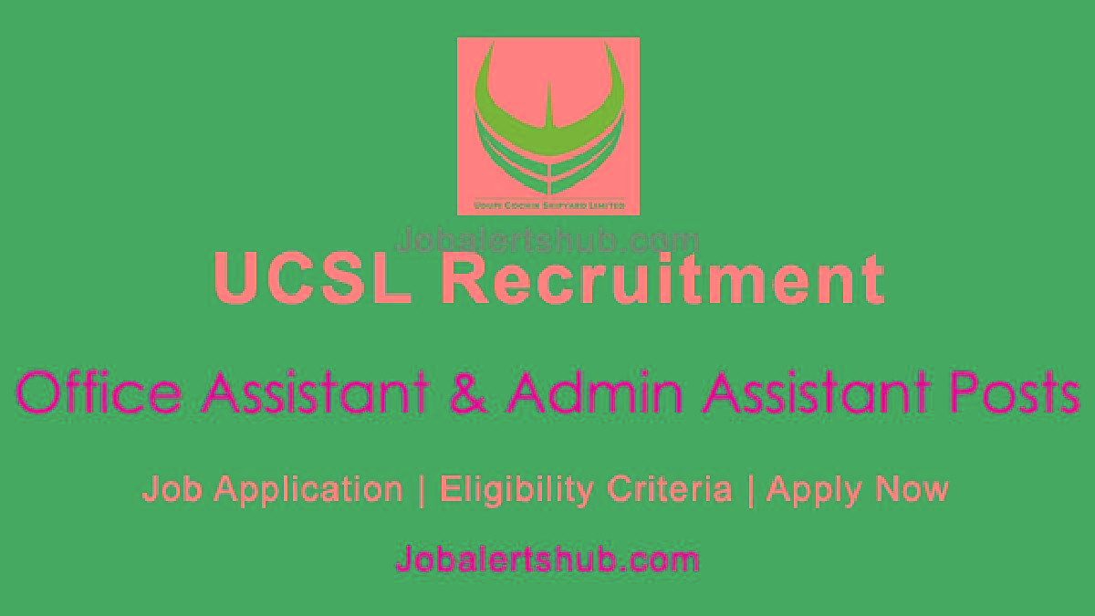 This job notification from Udupi Cochin Shipyard Limited (UCSL) announces vacancies for Office Assistant and Admin Assistant posts on a contract basis.